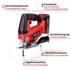 Einhell TC-JS 18/70 Li (1x2,5Ah) Power X-Change akumulátorová přímočará pila , 18 V, 2.5 Ah, 4321280