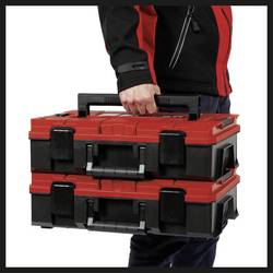 Kufr Einhell E-Case s-F zajišťuje snadné skladování a pohodlné přenášení strojů a příslušenství. Kufřík E-Case s-F je součástí flexibilně kombinovatelného E-case a je ideal pro uložení a přepravu nářadí a příslušenství. Kufr je 13 cm vysoký, 44 cm dlouhý a 33 cm široký. Díky max. Hmotnost nákladu 25 kg poskytuje velmi kvalitní systémový kufr maximální flexibilitu a může být vybaven různými zařízeními včetně nástavců a příslušenství, jako jsou šrouby nebo vrtáky. Praktický blokovací systém pro spojení stohovaného kufru zajišťuje uspořádané, bezpečné skladování a snadnou přepravu. Díky speciální konstrukci lze kufr otevřít i ve stanovaném stavu. Kufr je vyroben z polypropylenu a je tak odolný proti stříkající vodě, vysokým teplotám a odolné proti zásahu. Dvě sklopná a ergonomická rukojeť pro pohodlné nošení. Kufřík může být chráněn proti krádeži pomocí běžného visacího zámku.
