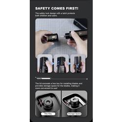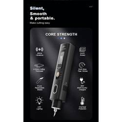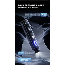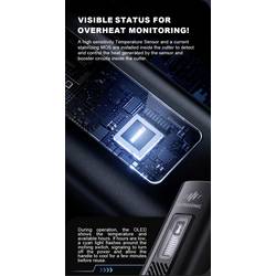 Ergonomická rukojeť z hliníkové slitiny s dynamickým chladicím systémem a eloxovaným povrchem zajišťuje efektivní odvod tepla a delší dobu provozu. Integrovaný dvouřádkový OLED displej poskytuje informace o režimu, teplotě a stavu čepele, což zvyšuje was kontrolu a bezpečnost. Navíc je integrována dětská pojistka, chránič ostří a přípojka typu C pro rychlé nabíjení.