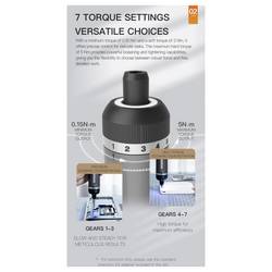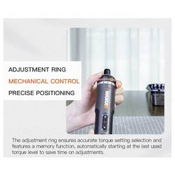 Elektronická volba točivého momentu pomocí tří stupňů lze stisknutím tlačítka nastavit sílu. To umožňuje zašroubování v jedné rovině a zabraňuje poškození šroubů nebo obrobků.