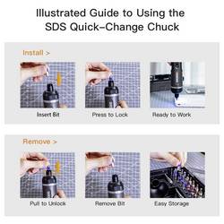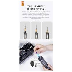 Součástí dodávky je sada bitů pro běžné aplikace, která mimo jiné zahrnuje nástavce s plochým, křížovým a T profilem.