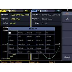 - 6 základní průběhy signálu: sinus, obdélník, puls, rampa, šum a harmonické vlny, 152 vestavěné arbitrární generátor signálu skupin