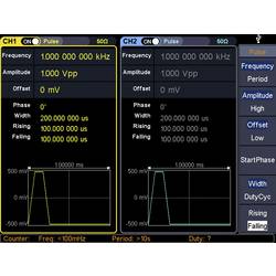 2kanálový arbitrární funkční generátor FG-30000T s dotykovým displejem. Tento arbitrární generátor funkcí produkuje díky svému digitálnímu generování signálu (technologie DDS) stabilní, přesné a čisté výstupní signály s šířkou pásma 80 MHz, vzorkováním v reálném času 1,25 GS/s (max.) a frekvenčním rozlišením 1 μHz. Generátor zvládá 6 základních signalizačních skupin (sinus, obdélník, rampa, šum a harmonické vlny) a 152 integrovaných arbitrárních signálů (1 μHz - 50 MHz) s vertikálním rozlišením 14 bitů Kromě toho nabízí mnoho možností modulace, mimo jiné AM, FM, FSK, 3FSK, PSK, OSK, ASK, BPSK, PWM, Sweep a Burst. Všechny parametry signálu a nastavení se zobrazují na 8" (20,32 cm) TFT LCD displeji s 800 x 600 pixely, ve snadno ovladatelném grafickém rozhraní.