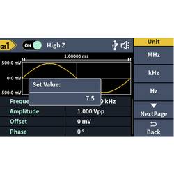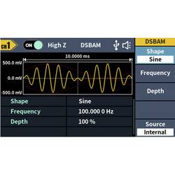 - Rozsáhlý průběh signálu: Sinus, obdélník, impuls, rampa, šum a 150 integrovaných arbitrárních průběhůDélka hřídele: 2 PTS až 100 kMODULACE: AM, DSB-AM, FM, PM, ASK, FSK, PSK, BPSK, QPSK, 3FSK, 4FSK, OSK, PWM, SUM, SWEEP, BURSTFrekvenční rozsah: 100 MHz - 100 MHzRozlišení frekvenčního čítače: 7-místnýVstup: Vstup čítače frekvence, externí modulační vstup, externí trigger vstupVýstup: SyncKomunikační rozhraní: Rozhraní USB Host, USB zařízení