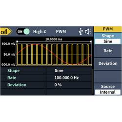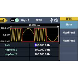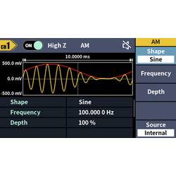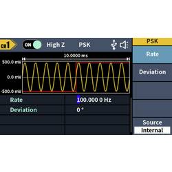 • Rozsáhlý průběh signálu: Sinus, obdélník, impuls, rampa, šum a 150 integrovaných arbitrárních průběhůDélka hřídele: 2 PTS až 100 kMODULACE: AM, DSB-AM, FM, PM, ASK, FSK, PSK, BPSK, QPSK, 3FSK, 4FSK, OSK, PWM, SUM, SWEEP, BURSTFrekvenční rozsah: 100 MHz - 100 MHzRozlišení frekvenčního čítače: 7-místnýVstup: Vstup čítače frekvence, externí modulační vstup, externí trigger vstupVýstup: SyncKomunikační rozhraní: Rozhraní USB Host, USB zařízení