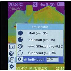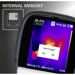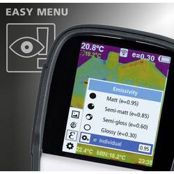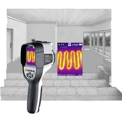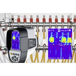 Kompaktní termokamera pro použití v oblasti stavebnictví, elektrotechniky a strojírenství 3,2" barevný displej s vysokým rozlišením pomáhá spolehlivě vyhodnotit a analyzovat teplotní podmínky, infračervený senzor s rozlišením 220 x 160 pixelů umožňuje rychlé a snadné měření pro vyhodnocení teplotních profilů. Kamera má velký rozsah měření -20 °C…350 °C, rozsah emisních hodnot je nastavitelný od 0,01 až do 1,0. Kromě toho jsou k dispozici přednastavené povrchy. Analýzu je do možné přepnout do různých režimů obrazu: infračervený obraz na celou obrazovku, digitální obraz, smíšený obraz: prolínání infračerveného a digitálního obrazu.. Kamera má centrální měřicí bod pro tepelnou analýzu a doplňkové značení teplých/studených bodů. Standardní výběr barev: spektrum, železo, studená, bílá, černá. Přenos dat a ovládání přes WiFi, umožňuje zobrazení živého infračerveného obrazu.