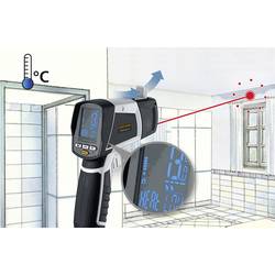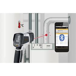 Bezdotykové měření teploty pro špatně přístupná místa nebo nebezpečné oblasti měření. S funkcemi pro měření teploty povrchů, okolí, mokrého teploměru, rosného bodu, kontaktní teploty, relativní vlhkosti vzduchu.