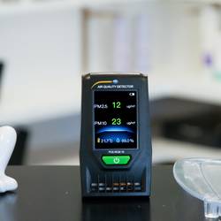 Přístroj na měření prachu PCE-RCM 10 měří zatížení prachem v řádech PM 2.5 a PM 10. Naměřené hodnoty kvality vzduchu se zobrazují na brilantním barevném displeji. Jemný prach, který měří přístroj pro měření kvality vzduchu PCE-RCM 10, je v řádech PM 2,5 nepřesný, může se tam skladovat a poškodit plod. Pro orientační měření na pracovištích, která mohou být znečištěna, je velmi vhodný měřič kvality vzduchu. Naměřené hodnoty se na barevném displeji zobrazují zeleně, žlutou a červenou až růžově. Pomocí této „semaforové funkce“ měřiče kvality vzduchu lze snadno detekovat mezní hodnoty a umožnit rychlou reakci na změnu. Pomocí nastavení „grafického zobrazení naměřených hodnot“ můžete sledovat změny naměřených hodnot po dobu 3 minut. Dále se zobrazuje aktuální teplota a relativní vlhkost vzduchu. Měřič kvality vzduchu lze napájet z vestavěného akumulátoru nebo přes USB konektor. K nabíjení akumulátoru slouží také USB konektor.