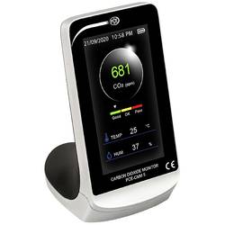 Měřič kvality vzduchu pro CO2 (oxid uhličitý), teplotu a vlhkost / funkce semaforu 5 h zobrazení průběhu / akumulátorový a síťový provoz měřič kvality vzduchu je přístroj pro stolní počítač. Přístroj měří obsah CO2 ve vzduchu a zobrazuje naměřenou hodnotu na velkém LCD displeji. Obsah CO2 ve vzduchu je důležitým měřítkem pro kontrolu ventilací v kancelářích, třídách, přednáškách atd. Přístroj pro měření kvality vzduchu přispívá k pravidelnému větrání zaměstnanců v kanceláři. Měřicí přístroj kontroluje kvalitu vzduchu v místnosti nad obsah CO2. Je koncentrace CO2 pod 1000 ppm, kvalita vzduchu v místnosti je optimální. Dobrá kvalita vzduchu v místnosti přispívá k podpoře koncentrace. Rovněž je zajištěno, že koncentrace aerosolu ve vzduchu je nízká, protože aerosoly jsou vždy znovu smíchány s čerstvým vzduchem. Měřič kvality vzduchu v místnosti zobrazuje kvalitu vzduchu jako numerickou hodnotu a jako indikátor semaforu. Stisknutím tlačítka lze zobrazit obsah CO2 za posledních 5 hodin na displeji. Kromě funkce měření CO2 je měřič kvality vzduchu vybaven senzorem teploty a vlhkosti vzduchu. Senzory pro monitorování kvality ovzduší podléhají jiným požadavkům než v průmyslovém nebo vědecko-laboratorním použití. V popředí jsou proto senzory jako vysoká dlouhodobá stabilita, nízká údržba a nízká spotřeba energie. Splňuje kvalitu vzduchu v místnosti pomocí NDIR senzoru. Nedisperzní infračervené (NDIR) měření absorpce umožňuje přesné a dlouhodobě stabilní měření s absolutním rozsahem měření až 5000 ppm.