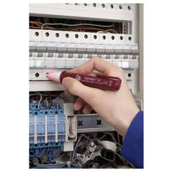 Bezdotyková zkoušečka napětí v nárazuvzdorném a nerozbitném pouzdru. Snadná a rychlá lokalizace vodičů pod napětím, přerušení nebo vadných žárovek ve světelných řetězech. Napětí se zobrazuje opticky.