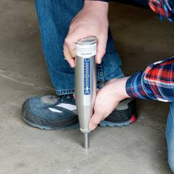 Měřič tvrdosti materiálů PCE-HT-225A (kladivo podle Schmidt) praktický, mechanický zkušební přístroj pro pevnost betonu, betonový zkušební kladívko na principu měření Schmidt. Kromě zásadního použití ve stavebnictví a konstrukci se jednoduché betonové zkušební kladívko, které má být použito, používá v mnoha jiných průmyslových odvětvích výrazně mimo své použití (zkouška tvrdosti převinutých výrobků na jedné roli...). Zkouška se provádí za stejných zkušebních podmínek jako 2,207 J. Kinetická kinetická energie zpětného odrazu se vyjadřuje jako hodnota tvrdosti betonu/plošného lisování nebo tlakové pevnosti (kg/cm² nebo přepočtená na N/m²) na přístroji pro měření tvrdosti. Kvalita betonu se hodnotí především na základě jeho odolnosti vůči tlaku, neboť se přímo týká křídel a trvanlivosti betonových konstrukcí. Odolnost vůči tlaku se označuje jako série písmen a číslic. Příklad: B 25 znamená, že se jedná o normální beton s pevností v tlaku 25 N/m². Jsou k dispozici různé mezihodnoty až k nejvyšší třídě pevnosti B 55. Díky tomu můžete pomocí přístroje na měření tvrdosti snadno, rychle a přesně provést klasifikaci. Při objednávce je beton vždy kalibrován z výroby, může být ale také volitelně (za vzcenu) laboratorně kalibrován a vybaven certifikátem ISO / zkušebním certifikátem.