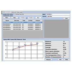Po měření tvrdosti určité součásti zobrazí ultrazvukový měřič tvrdosti materiálů různé statistické hodnoty jako min./max. A průměrné hodnoty. Stejně tak lze stanovit směrodatnou odchylku a další koeficienty, včetně zobrazení histogramu. Protože je ultrazvukový měřič tvrdosti materiálů vybaven interní pamětí, může být vyhodnocení naměřených dat po měření prováděno pomocí softwaru.