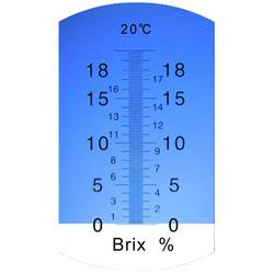 Refraktometr / ruční refraktometr pro víno / refraktometr s automatickou kompenzací teploty / kalibrací pomocí stavěcího šroubu / velmi přesný měřící prostředek / pro šťávu a vína / rozsah měření až do 18 % Brix s tímto refraktometrem lze rychle a přesně měřit. K provedení měření pomocí tohoto ručního refraktometru musí uživatel provést pouze několik kapek zkoušené kapaliny. Kapalina vzorku se při refraktometru pro víno hravě nanáší pomocí dodávané pipety. Pokud je ruční refraktometr pro šťávu nyní umístěn do světelného zdroje, může obsluha přímo zjistit hodnotu % Brix na základě stupnice. Pomocí tohoto refraktometru lze provádět měření kapalin například šťáv nebo také vín. Čitelná stupnice ručního refraktometru se rozprostírá v rozsahu 0 … 18 % Brix. S přesností ±0,1 % Brix a rozlišením ±0,1 % Brix se navíc jedná o velmi přesný refraktometr pro víno. Díky tomu lze ruční refraktometr pro šťávu použít pro mnoho druhů měření. Díky snadnému ovládání a vysoké přesnosti se tento refraktometr hodí například pro zemědělské odvětví, vzdělávací instituce, jako jsou univerzity, nebo vzdělávací instituce a výzkumné laboratoře. Také kalibraci ručního refraktometru může uživatel provést rychle a jednoduše. Aby se provedla kalibrace, musí se destilovaná voda ponořit do odměrné plochy refraktometru. Když se obsluha podívá z refraktometru pomocí okuláru, lze nastavit nulový bod. Pokud naměřená hodnota ručního refraktometru není 0 % Brix, může být jag proveden pomocí stavěcího šroubu. U mnoha refraktometrů musí být provedena kompenzace teploty. U tohoto ručního refraktometru to není nutné. Tento refraktometr pro šťávu má automatickou teplotní kompenzaci založenou na 20 °C. Proto se uživatel musí soustředit pouze na vlastní měření ručním refraktometrem na víno. Následné výpočty po měření refraktometrem tedy nejsou nutné. Ne vždy je stupnice z refraktometru dobře čitelná. Aby obsluha opět dobře čila stupnici od ručního refraktometru, lze provádět zaostření. To lze provést otáčením okuláru na refraktometru.