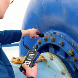 Příruční akcelerometr pro monitorování vibrací strojů a zařízení / funkce HOLD / měření špičkových hodnot / ruční přístroj pro měření vibrací / automatické hodnocení akcelerometru ISO 10816-3 je ideal pro pracovníky údržby pro rychlou kontrolu vibračních dílů, strojů a zařízení. Tento akcelerometr vydává zrychlení kmitání, rychlost vibrací a pohyb vibrací přímo na displeji. Pomocí tohoto přístroje tak můžete rychle a bezpečně detekovat a sledovat poškození ložisek. Akcelerometr je vybaven režimem, který umožňuje provádět měření podle normy ISO 10816-3. Akcelerometr analyzuje naměřené hodnoty a na displeji zobrazí automaticky vyhodnocení dobré/špatné. Akcelerometr je dodáván se senzorem na spirálový kabel, magnet, servisní pouzdro a baterie. ISO certifikát dotvářejí dodávky. Displej snímače zrychlení je barevný grafický displej, který usnadňuje ovládání, protože všechny pokyny a body menu jsou zobrazeny v textové části. Snadno lze přepínat mezi 12 jazyky v menu na akcelerometru.