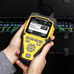 Nástroj Klein Tools Scout® pro Max testuje a vyhledává chyby v kabelech s konektory RJ11, RJ12, RJ45 a F a nabízí analogovou a digitální reprodukci zvuku pro sledování kabelů. Měří délku kabelu (pomocí metody TDR) a detekuje vzdálenost k chybám.