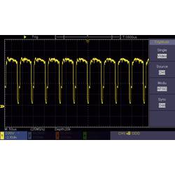 Nepostradatelný pomocník při měření průběhů napětíDigitální osciloskop VOLTCRAFT DSO-2104 nadchne šířkou pásma 100 MHz, 4 kanály a 17,78 cm (7") LCD monitorem. Maximální vzorkovací frekvence je 1 GS/s, kapacita záznamu 80 K. Kromě toho je k dispozici několik druhů spouštěčů a funkce měření frekvence.VOLTCRAFT DSO-2104 pracuje s 8bitovým vertikálním rozlišením a je schopen uložit 16 signálových křivek, které lze na počítači zobrazit v reálném času. USB konektor slouží současně k ukládání dat. Součástí dodávky jsou mimo jiné čtyři sondy s kolíkem pro kalibraci. VOLTCRAFT DSO-2104 přesvědčí příkonem nižším než 15 W o své nízké spotřebě energie.