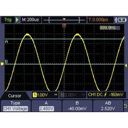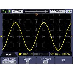 Jako osciloskop DSO-2072H má dva kanály s šířkou pásma maximálně 70 MHz, maximální vzorkovací frekvencí 250 MS/s a délkou záznamu 8K. Vertikální rozlišení je 14 bitů.