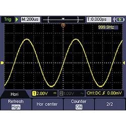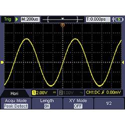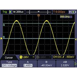 VOLTCRAFT DSO-2202H + AFG digitální osciloskop 3 v 1 nadchne šířkou pásma 200 MHz, 2 kanály a barevným LCD displejem 8,89 cm. Maximální vzorkovací frekvence činí 1 GS/s, kapacita záznamu 8 K. digitální osciloskop Voltcraft VOLTCRAFT pracuje s vertikálním rozlišením 8 bit. USB konektor slouží současně k ukládání dat.