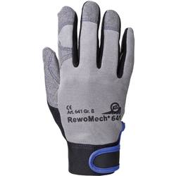 Extrémně odolná umělá kůže poskytuje dobrou ochranu při mechanických pracích. Současně rukavice RewoMech® 641 nabízejí uživateli dobrou přilnavost i při úchopu mokrých dílů a díky použité fólii Tyvek® fólii chrání dlaň před vlhkostí a oleji. Hřbetní strana je z lehkého a pružného textilu, díky čemuž rukavice skvěle padnou. Rukavice jsou prodyšné a poskytují alternativu k běžným koženým modelům. Jejich tvar umožňuje dlouhou práci bez únavy, jejich citlivost pak dává možnost pracovat i s filigránsky drobnými předměty. Manžeta je vybavena suchým zipem.