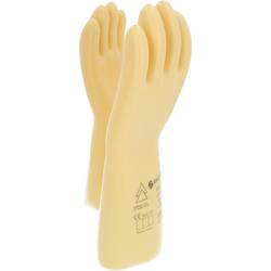 Dielektrické latexové rukaviceIzolace podle DIN EN 60903S anatomickým tvaremantialergické ošetřeníS přímým okrajemChráněno před UV zářenímDoporučuje se použít rukavice pro vstřebávání vlhkosti kůže a lepší ventilaci.Pozor: Natahovací rukavice jsou nutné pro mechanickou ochranu!