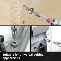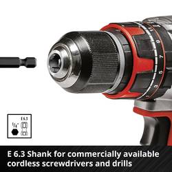 Rychloupínací držák bitů Einhell, který se skládá z karbonové oceli a má E 6.3 dřík, zajišťuje rychlou a snadnou výměnu bitů 60 mm.