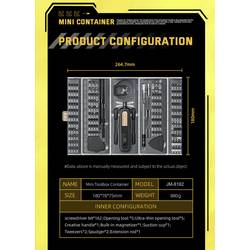 Sada JAKEMY JM-8192 je více než jen jedna sada bitů. Součástí dodávky je velké množství užitečného příslušenství, např. různé otevírací nástroje, pinzeta, pavouk, přísavka a prodlužovací tyč. Integrovaný magnet zajistí, že bity budou mít vždy potřebnou příčnou sílu. Ať už jste kutili, profesionálové nebo příležitostní uživatelé, tato sada je ideálním společníkem pro všechny své opravárenské a DIY potřeby.