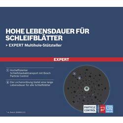 Až dvakrát delší životnost listů Multiotvor v porovnání se standardním podpůrným talířem - brusné papíry s více otvory slibují vyšší účinnost, delší životnost příslušenství a lepší pracovní prostředí bez prachu. Chcete-li však z této „bezprašné“ revoluce plně těžit, potřebujte vhodný podpůrný talíř. Multifunkční podpůrný talíř Expert Multihole (Expert Multich) je nedílnou součástí systému Particle Control od společnosti Bosch. Zdánlivě náhodné rozdělení otvorů je výsledkem rozsáhlého výzkumu: Matematicky je vždy na papíře dostatek otvorů pro zajištění optimálního odsávání prachu. To znamená, že tvé listy neucpávají a neudržují déle. K dostání v tvrdých, středně tvrdých a měkkých verzích, v závislosti na druhu broušení. Opěrný talíř Bosch Expert Multihole (Bosch Expert Multiotvor Získáte výhody teprve z lepšího vzduchu, kvalitní práce a delší životnosti brusných listů. Opěrný talíř 150 mm pro excentrickou brusku Bosch.