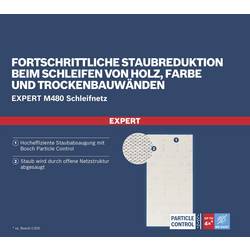 Až o 4 krát lepší odsávání prachu než standardní brusný papír - prach, který je tak pokryty, jej můžete chutnat. Umožňuje použití brusného papíru, který je prakticky nepoužitelný. Pokrývá vše v místnosti a proniká celým domem. Prach je největší nevýhodou při broušení. Díky systému Particle Control se však tento problém do značné míry vyřešil. Bosch Particle Control zajišťuje, aby všechny prachové částice byly nasávány do vaku Brusný list Bosch Expert M To zajišťuje vysokou míru účinnosti a velmi dlouhou životnost. Mnoho odborníků se obtížně domnívá, že jsme odstranili největší problém při broušení. Nebylo to snadné, ale podařilo se to. Broušení bez prachového tvorby s brusnou sítem Bosch Expert M480. Snadné upevnění pomocí suchého zipu.
