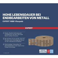 Vydrží až 3 krát déle než standardní brusný list - kvalitní kovové práce vyžadují vysoce kvalitní povrchovou úpravu - a k tomu potřebujete dobré, rovnoměrné brusné prostředky. Expert N880 není dobrý pouze tehdy, když je poprvé odstraněn z obalu. Po dlouhou životnost zůstává dobře udržována a zajišťuje rovnoměrné rozložení. Flíspad Expert N880 je příkladem toho, co Bosch Surface Structure: Kombinuje nejnovější technologii brusných technologií a výrobní schopnosti v jedné, obzvláště trvanlivé textilie. S trojrozměrným produktem s Cross-Laying technologií šetří peníze profesionálům díky dlouho udrženému výkonu. Kromě toho se již nebudou muset rozčilovat prostřednictvím brusných listů pro ruční broušení, které ztratí zrna. Nezáleží na tom, zda dokončíte kovové komponenty s přesností, vyčistíte obrobek nebo si brousíte obtížně dostupný povrch - Expert N880 je z dlouhodobého hlediska tou nejlepší volbou.