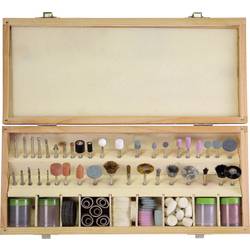 - 30x červený brusný kotouč Ø 25 mm30x černá dělicí destička Ø 25 mm30x brusný kotouč Ø 20 mm11x různé brusné hlavy10x řezací kotouč se skleněnými vlákny Ø 32 mm10x brusný válec Ø 12,5 mm (1/2")10x brusný válec Ø 6,3 mm (1/4")10x plstěný nástavec (kónický) Ø 20 mm10x plstěný nástavec (kulatý) Ø 15 mm7x plstěný nástavec (kulatý) 25 mm6x zelený brusný talíř Ø 20 mm6x červený brusný kotouč Ø 20 mm5x diamantový brusný kolík s různými geometriemi4x brusný hrot s různými geometriemi3x vrták HSS 1,6 / 2,3 / 3,2 mm2x upínací trny pro brusné válečky 12,5 mm (1/2") a 6,3 mm (1/4")2x upínací trny pro brusné kotouče2x frézovací hlava (kulatá/cylindrická)3x mosazný kartáč3x kartáč z nerezové oceli3x plastový kartáčDržák pro plstěné nástavceKarborundový kámen 10 x 10 x 20 mmLešticí pastaDřevěná krabice
