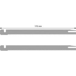 Pilové plátky pro rychlé a čisté řezání do měkkých, poddajných materiálů jako je pěna nebo gumované žíně. Řezání do tloušťky materiálu 30 cm. 2dílná souprava pilových plátků. 130 mm.