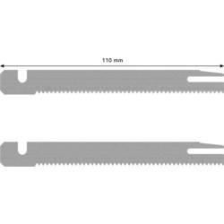 Pilové plátky pro rychlé a čisté řezání do měkkých, poddajných materiálů jako je pěna nebo gumované žíně. Řezání do tloušťky materiálu 30 cm. 2dílná souprava pilových plátků. 70 mm.