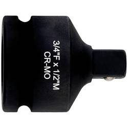 - Adaptér s 3/4“ s vnitřním čtyřhranem pro strojové zařízení a 1/2“ s vnějším čtyřhranem pro nástroje odolné proti nárazu se stopkou 3/4“