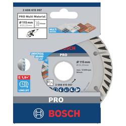 Diamantový řezný kotouč Standard for Universal umožňuje spolehlivé řezání na obecných materiálech. Optimalizovaná diamantová matrice umožňuje spolehlivé výsledky díky vysokému standardu kvality. Centrum excelence Bosch Diamant ve Švýcarsku zaručuje tento standard nepřetržitým poskytnutím odpovídající kvality. Vhodné pro řezání betonu a zdiva. Průměr mm: 115, průměr otvoru mm: 22,23, šířka řezu mm: 2,0, výška segmentu mm: 10
