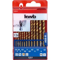 kwb 429040 HSS sada spirálových vrtáku do kovu, 13dílná, 1.5 mm, 2 mm, 3 mm, 3.2 mm, 3.5 mm, 4 mm, 4.2 mm, 4.5 mm, 5 mm, DIN 338, válcová stopka, 13 ks