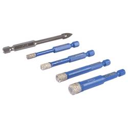 - 4x diamantový dutý vrták (5 mm, 6 mm, 8 mm, 10 mm)