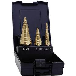 Exact 07014 HSS sada stupňovitého vrtáku, 3dílná, TiN, kuželový záhlubník 3 břitý, 1 sada