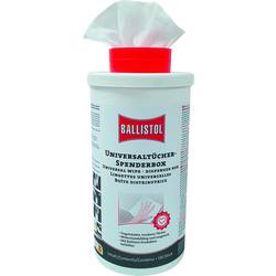 Univerzální zásobník utěrek lze kombinovat s téměř každým balistolem (tekutým).Zásobník je opakovaně použitelný a lze jej kdykoliv doplnit univerzálním hadříkem Ballistol. Box lze libovolně naplnit tekutými balistoly produkty. Pomocí impregnovaných hrnků můžete čistit a udržovat jakýkoliv povrch.Pokud je plechovka naplněna populárním univerzálním olejem, jsou hadříky skvěle vhodné pro péči o zbraně, ale i pro povrchy z nerezové oceli, dříky na dřevo, psí kůže nebo pro péči o kůži. Přípravek pro dezinfekci rukou s balistolem lze dezinfikovat nejen ruce, ale i povrchy. Perfektní všestranný pomocník se získá například při přidání univerzálního a plastového čističe. Tato kombinace mimo jiné čistí povrchy v autě, plastové části, potahy sedadel, nábytkových plochách nebo zahradním nábytku.Zásobník obsahuje 130 utěrek. Ubrousky o velikosti 20 x 19 cm.