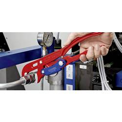 Kleště: červeně práškované · Šetří čas, přesné nastavení šířky rozevření stisknutím tlačítka přímo na výrobku · Ulehčují práci díky automatickému sevření · Nedochází k neúmyslnému přenastavení ramene kleští · Ochrana sevření brání poranění · Nejvyšší zatížitelnost díky plně zušlechtěnému ramenu kleští · Vysoká odolnost proti opotřebení díky dodatečně kalenému ozubení · Chromvanadová elektroocel, kovaná, kalená v oleji.