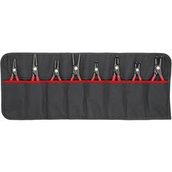 8 běžných přesných kleští na pojistné kroužky pro nejvyšší nároky, svinovací pouzdro z odolné polyesterové tkaniny. S praktickým nastavitelným rychlouzávěrem