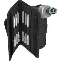 Přepínací ráčna Wera s vícekomponentní pistolovou rukojetí Kraftform pro vysokou pracovní rychlost a mimořádně ergonomické šroubování. Jemné ozubení pro malý úhel zpětného zaskočení pouhých 8°, přepínací kroužek (vpravo, napevno, vlevo), maximální točivý moment až 50 Nm. Šestihranná čepel s upínacím prvkem 1/4" s vnitřním šestihranem a s technologií Rapidaptor, magnetické provedení. S praktickým držákem pro upevnění na opasek.