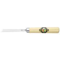 Vrubovací dláto rovné, se šikmým ostřím, s osmihranným držadlem na bílou knihu »KIRSCHEN« Kerbschnitzel se ručně kované ze speciální nástrojové oceli s vysokým podílem uhlíku. Přilévejte s tvrdostí ± HRC 61 po celou užitečnou délku čepele daleko nad úrovní DIN a díky svému leštěnému povrchu vytvářejí hladký řez bez rýh. Dláto se dodává s úhlem ostří 17° a připraveno k použití. Tento úhel je vhodný pro měkké až středně tvrdé dřevo. Vrubovací dláto se hodí pro malé až středně velké práce s ořezáním a intarsií.