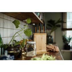 Tento moderní měřicí blok je vyroben z bambusu s certifikací FSC® (FSC C108780) a plastu a obsahuje tři nejčastěji používané nože: Velký kuchyňský nůž, Santoku a loupací nůž. Každý nůž má funkci, pohodlí a lehkost, má trvanlivé, japonské nerezové čepele a ergonomické rukojeti s úpravou Softgrip™ a ochranu prstů. Všechny lze mýt v myčce pro snadné a každodenní čištění. Navrženo ve Finsku.