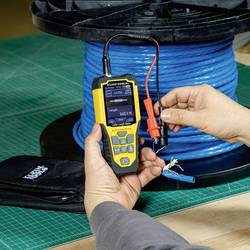 Tento přístroj pro měření délky kabelů Klein Tools je přenosný časový reflektometr.