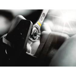 Sada očkoplochých klíčů, 8 ks, palcové velikosti; na svorkovnice. Očkoplochý klíč Joker 6000 s přidržovací funkcí pro šestihranné hlavy nebo matice. Vyměnitelná kovová deska v matici zajišťuje mimořádně tvrdé zuby šrouby a matice. Integrovaný koncový doraz brání proklouznutí hlavy šroubu dolů a umožňuje utažení vysokým utahovacím momentem. Dvojitá šestiúhelníková geometrie zajišťuje tvarové spojení se šroubem nebo maticí, a tak snižuje riziko sklouznutí. Úhel zpětného otočení pouhých 30° na straně čelistí brání časově náročnému otáčení klíče při šroubování. Ráčnová mechanika na očkové straně s mimořádně jemným ozubením 80 zubů pro flexibilitu i v úzkých prostorech. Speciální kovaná geometrie zajišťuje vysoký přenos točivého momentu a vysokou tuhost v ohybu. Vyrobeno z výkonné chrom-molybdenové oceli s nikl-chromovým potahem pro vysokou ochranu proti korozi. S identifikátorem nářadí „Take it easy“: barevné označení podle velikostí. Svorky na liště zajistí perfektní upevnění nářadí. Lišta bezpečně drží díky silnému magnetu na kovových plochách. Alternativně lze lištu také přišroubovat na zeď.