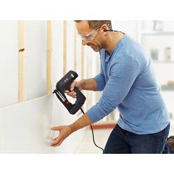 Velmi zpětné ramena Paneeltacker pro Vertafelungsarbeiten se hodí také k upevňování standardní profil dřevo hrotům. S dlouhou nosem pro přesnou práci. Vybaven za nabíjecí mechanismus s integrovaným svorka posuvné měřítko, Expresss-Storungsbeseitigung, podle příklepem, Seřizování síly úderu a průbojnosti Průhledové okno.