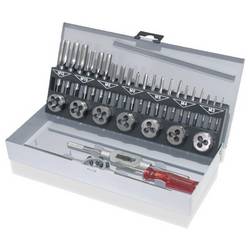 Kruhová závitová čelist 25 x 9, držák závitníků k tomuto účelu, ruční závitník v sadě (sada po 3 ks), stavitelné vratidlo k tomuto účelu, šroubovák