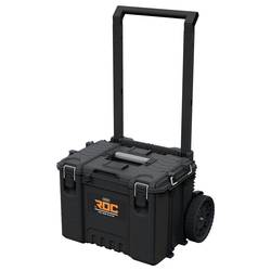 Vozík na nářadí ROC pro: S odnímatelnými 9 palcovými koly, které jsou vhodný do terénní oblasti a zlepšují mobilitu. Mnohostranně použitelná s nabíjecí kapacitou 72 kg a objemem 57,5 litrů. Disponuje trvanlivými zámky, očkem pro visací zámek a stohovatelnou modulární konektivitou.