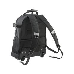 Teleskopická rukojeť a kolečka pro snadnou přepravu těžkých nástrojů. Teleskopická rukojeť lze pohodlně odložit do batohu. Zvýšená základna s plastovými nožkami: Ochrana na mokrém podlaze. Držadlo umožňuje alternativní způsob přenášení batohu. 15 kg nabíjecí schopnosti. 600 Denier pro dlouhou životnost a odolnost proti roztržení. Vyjímatelné organizér umožňují organizované uložení malého ručního nářadí. Slouží také jako přepážka v batohu. Polstrované ramenní popruhy pro extra pohodlí při přepravě těžkých nástrojů.