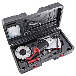 Úhlová bruska s již namontovaným odsávacím krytem v kufříku je ihned připravena k použití. Diamantový řezný kotouč Standard beton 230 mm včetně výkonné úhlové brusky L 26-6 230 s pozvolným rozběhem, blokování proti opětovnému zapnutí po výpadku proudu, ochrana proti přetížení, CDC konstantní elektronika, funkce Anti-KickBack plně zapouzdřený odsávací kryt pro efektivní odsávání prachu přímé připojení Flex Clip systému extrémně stabilní konstrukce. Žádné zborcení díky boční hmotnosti úhlové brusky díky základové desce se stabilizátory pro snadný posuv. Lze použít s vodicím hloubkovým dorazem / bez vodící lišty a se stupnicí pro přednastavení hloubky řezu a libovolného začátku řezu (ponorný řez) s vodicími lištami a bez nich (max. 55 mm s, 60 mm bez lišty). Postranní rukojeť lze namontovat zprava/doleva kufřík včetně víka pro malé součástky, odkládací plochy pro diamantové řezný kotouč, postranní rukojeť a vodicí lišty 800 mm